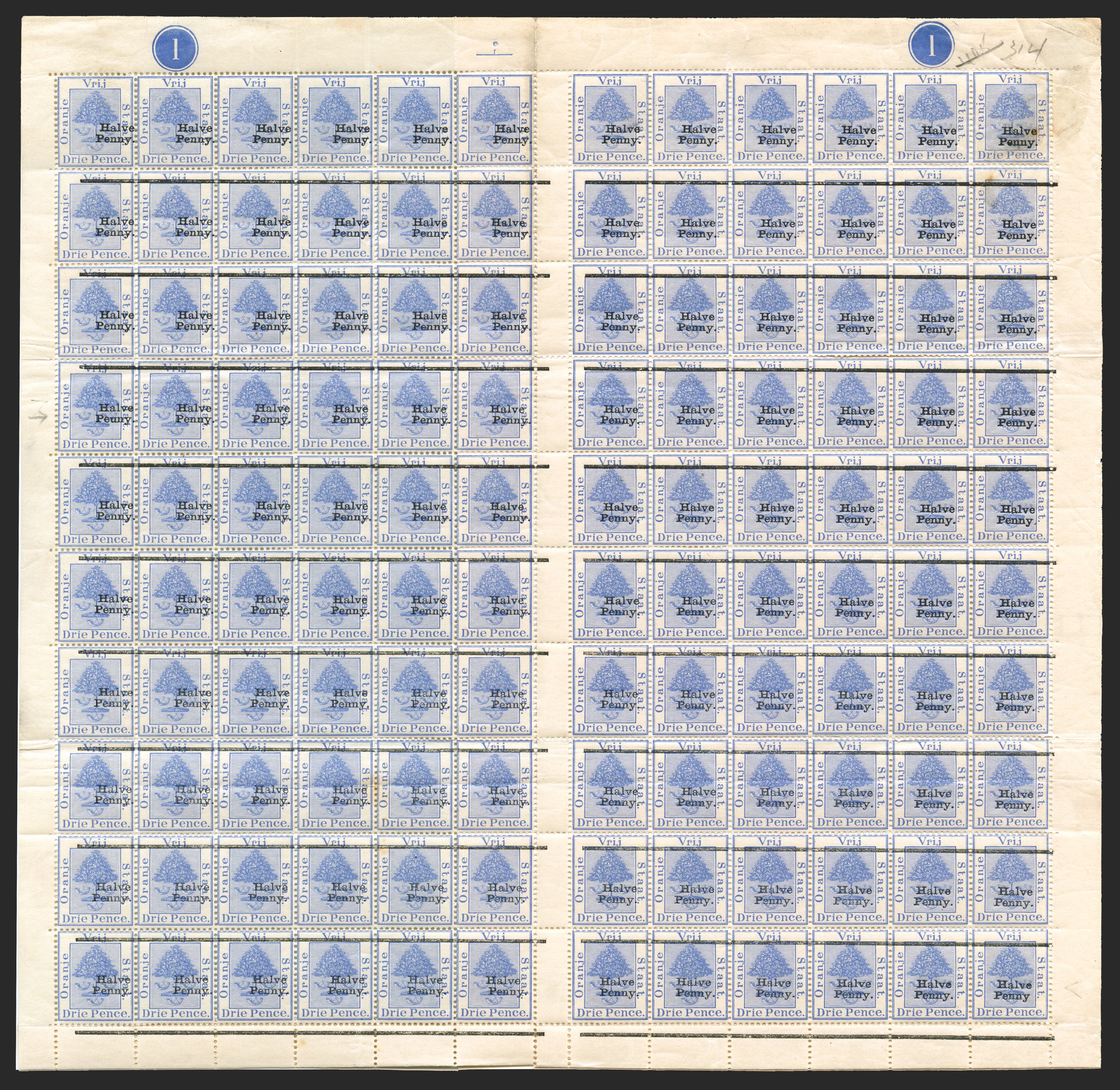 South Africa Orange Free State 1896 'Halve/Penny.' on 3d ultramarine, error, SG77/9var