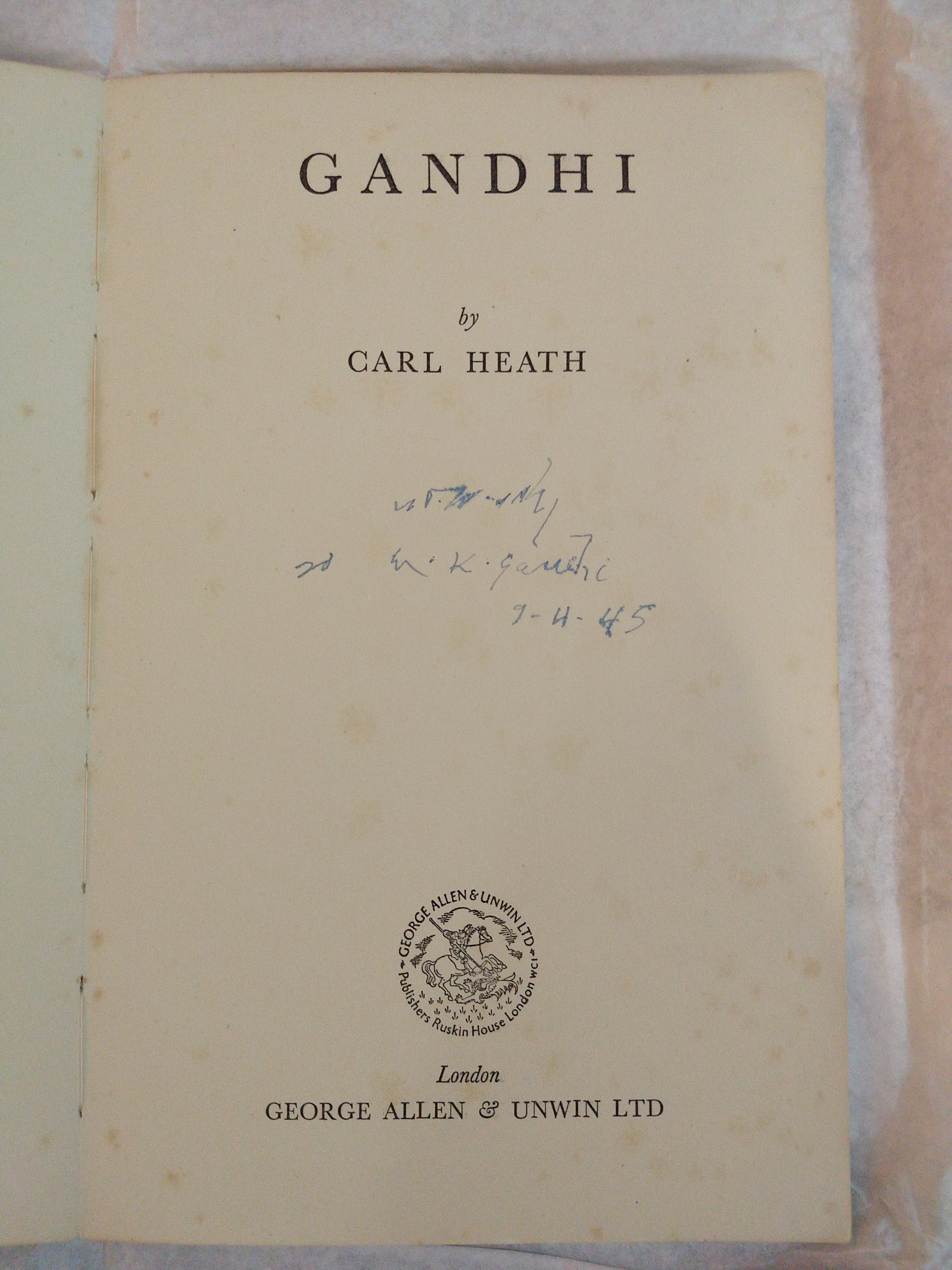 A Gandhi-signed paperback first edition copy of 'Gandhi' by Carl Heath.