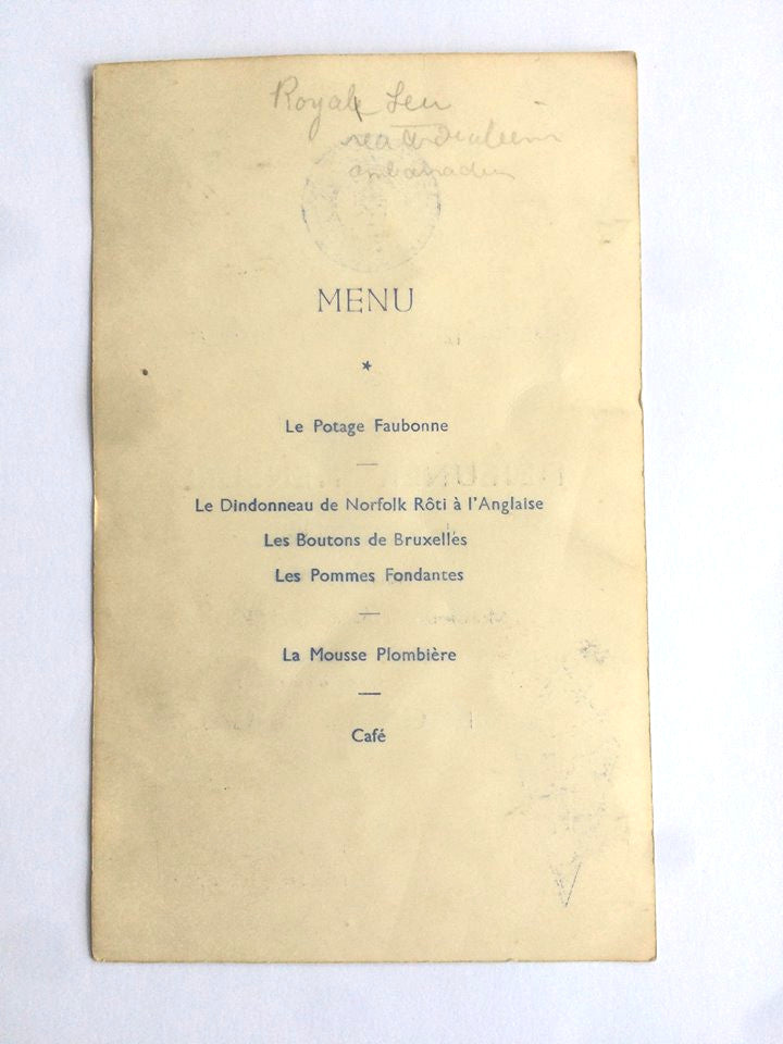 - A menu from a 1942 dinner at the Chambre de Commerce Francaise in London signed by Charles de Gaulle