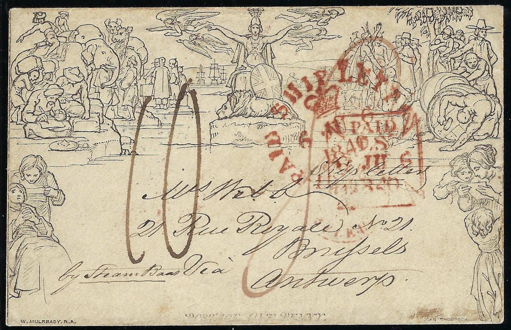 Backstamped with an oval framed "Angleterre Par Anvers" handstamp and Anvers and Bruxelles datestamps for 'JU.8.1840'.