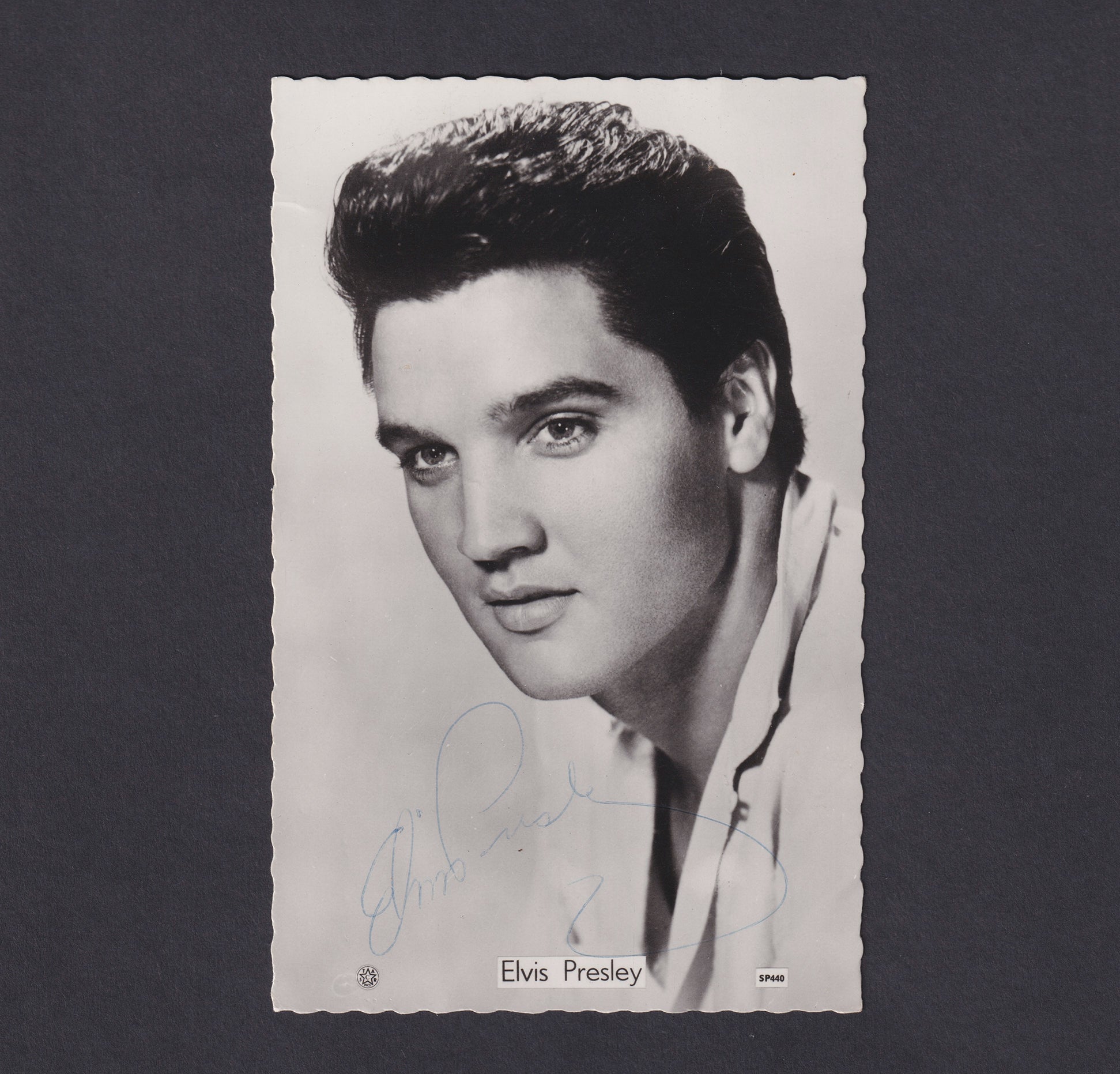 Signed by Elvis with a blue ballpoint signature to the bottom left.