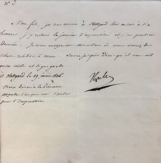 A rare letter from Napoleon to his stepson Eugene de Beuharnais, dated January 19, 1806 - five days after Eugene’s marriage to Princess Augusta of Bavaria.