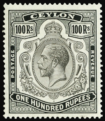 Ceylon 1921-32 100r grey-black, Script watermark, printing variety 'Break in lines below left scroll' (R4/9) SG359he. .