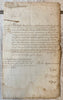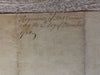 Crisply trimmed along the left edge. This slightly impacts the text but not the signatures. Features small tears along lower and right edges. There is also a small water stain to the lower edge.