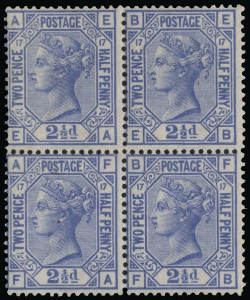 Great Britain 1880 2½d blue, plate 17. SG142