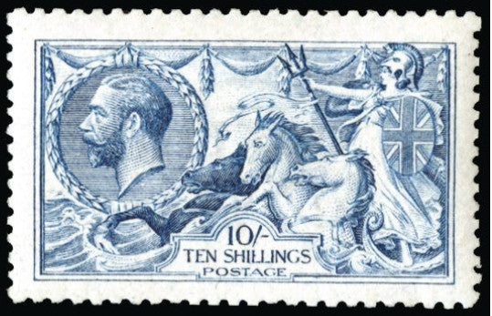 Great Britain King George V 1915 10s pale blue "seahorse". Very fine and fresh, well centred unmounted mint example with full original gum, printed by De La Rue. SG Specialised Catalogue Number: N70(6), SG413.