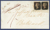 Great Britain 1841 (3 Feb) wrapper to Bakewell bearing 1d black, plate 9, horizontal pair, lettered 'AH-AI', (deep shade small to large margins just cut into foot of AH), SG2.