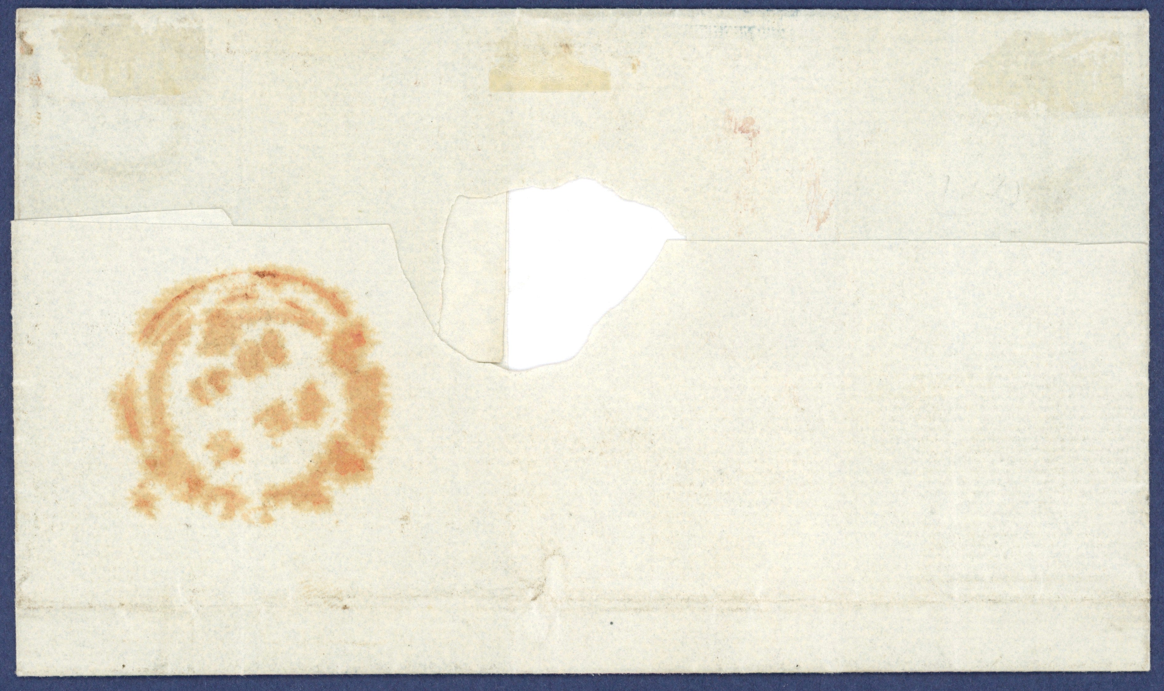 Tied by watery strikes of dull red Maltese Cross and marked Registered letter No. 247 and rate mark 1 shilling for registration. Oily strike of Liverpool despatch circular date stamp on reverse.