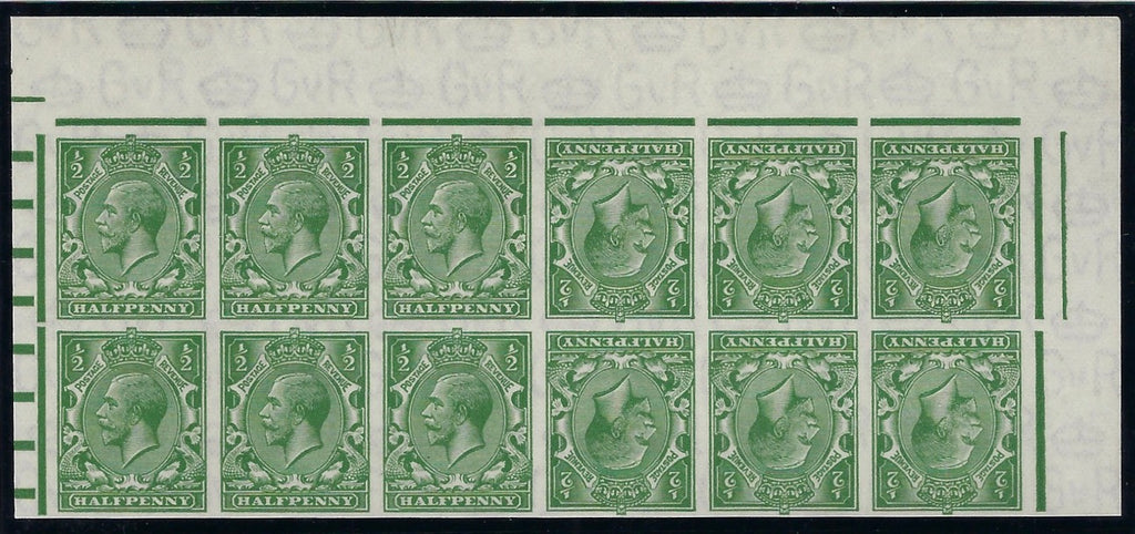 Superb unmounted original gum imperforate imprimatur top marginal tête-bêche pair of booklet panes of six imprimaturs with British Postal and Museums Archive handstamps on reverse.