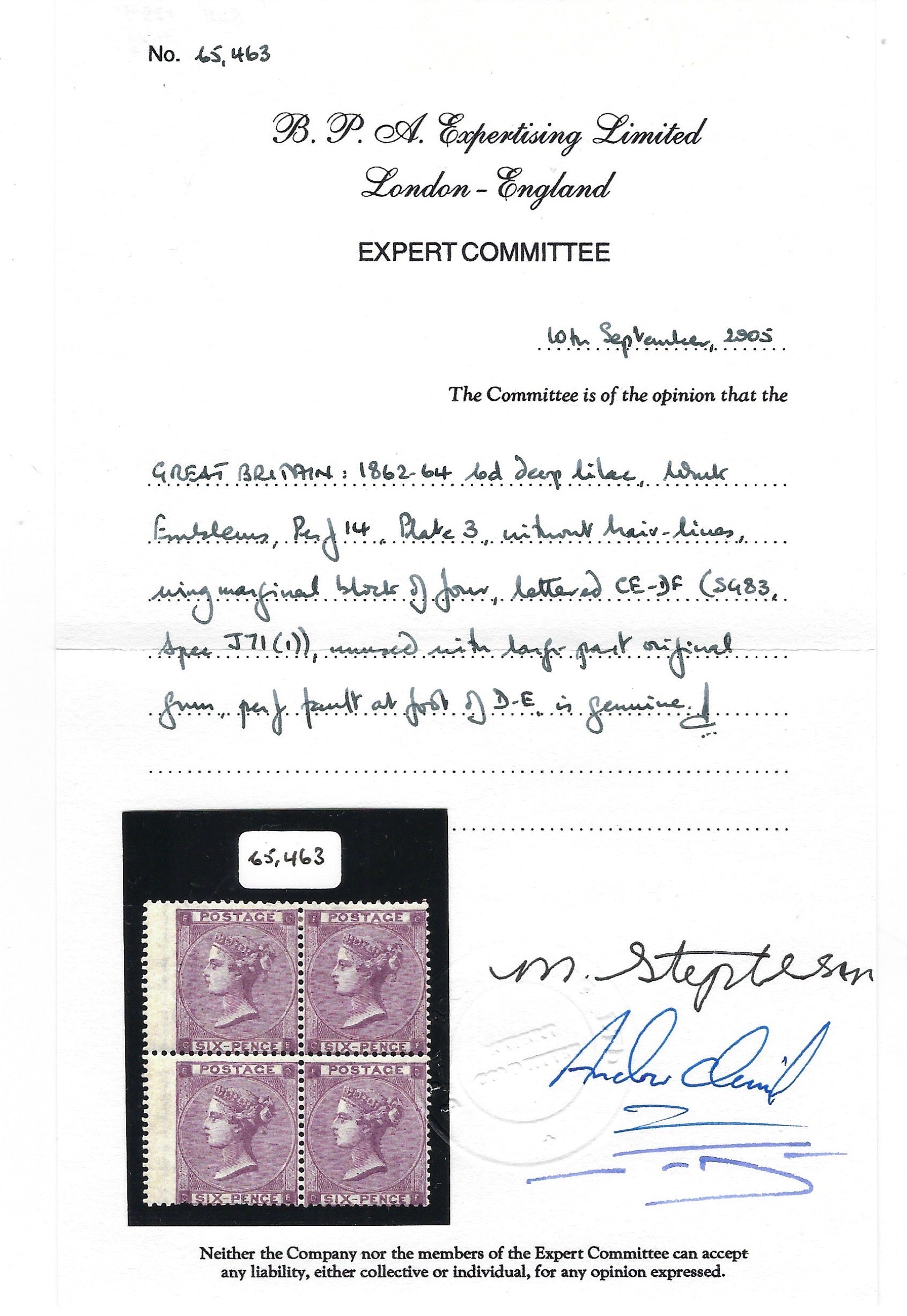 Great Britain 1862 6d Deep lilac Plate 3 (Watermark inverted), SG83wi.