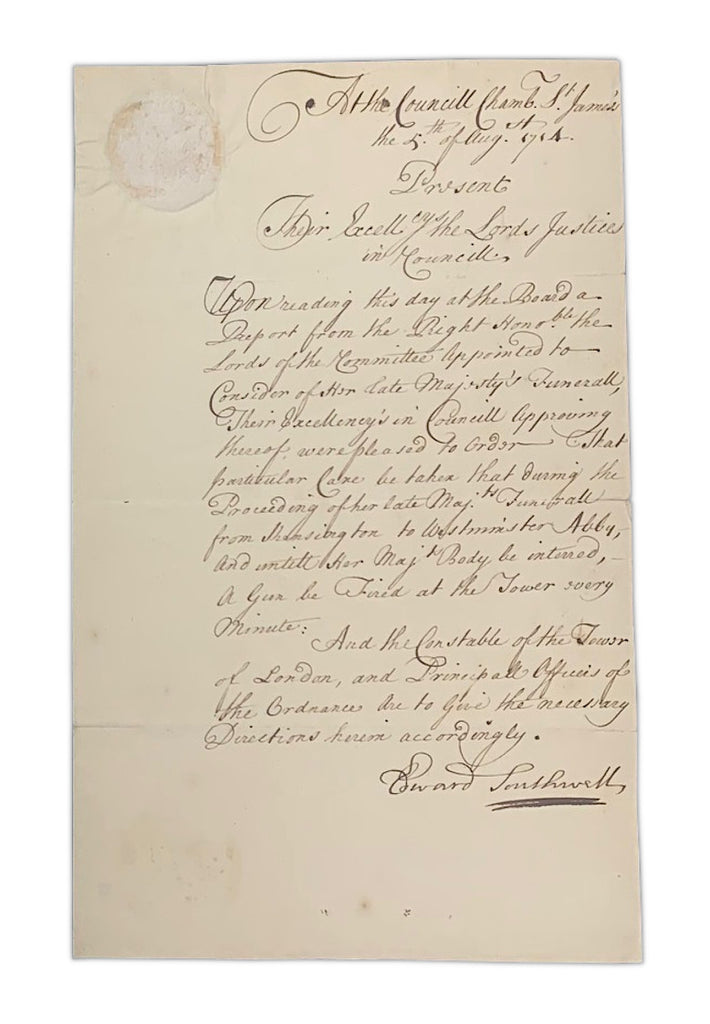 Queen Anne's Funeral - Gun Salute letter