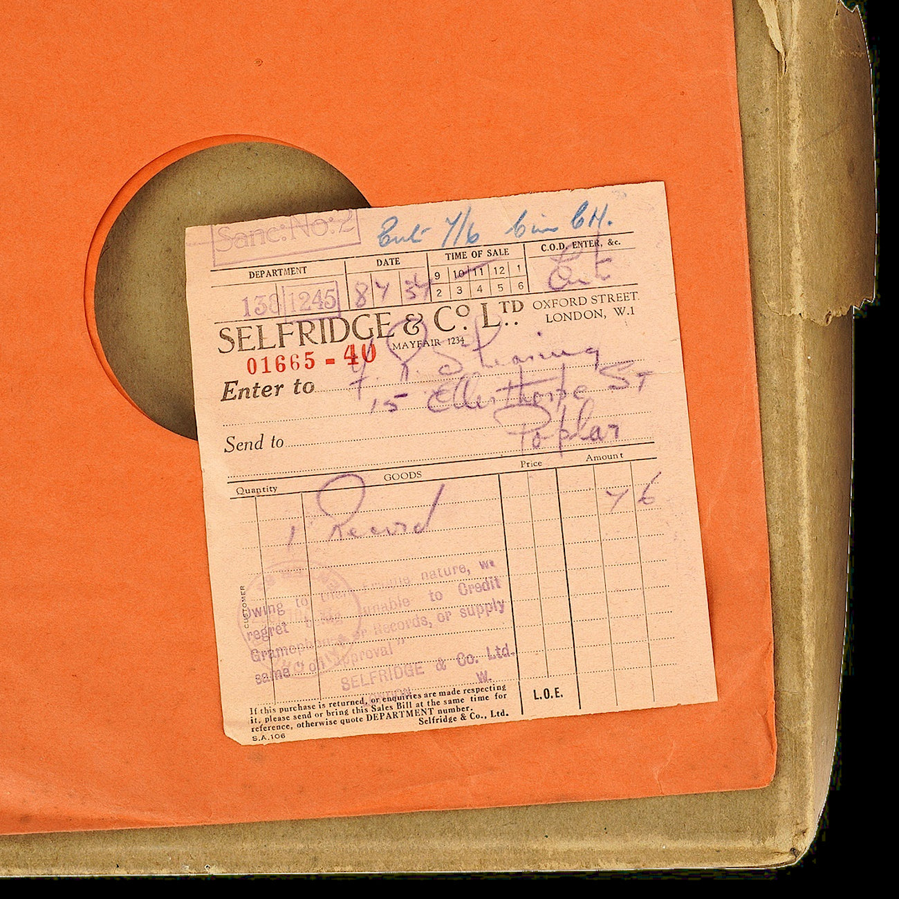 Complete with its original sleeve and box, with a purchase receipt from Selfridges dated July 8, 1937.