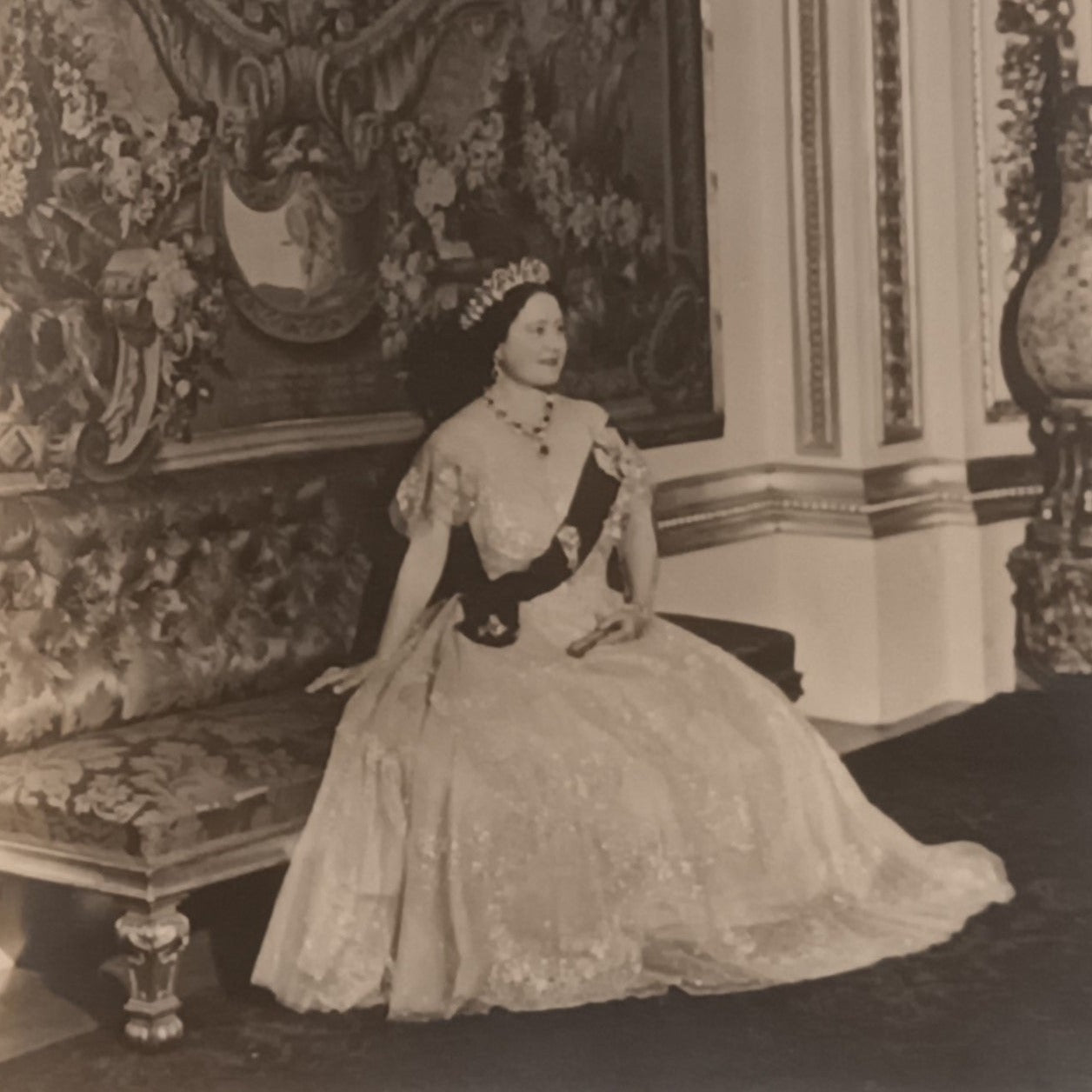 The image, captured by Cecil Beaton, features the Queen Mother sat in front of a portrait, and is beautifully signed "from Elizabeth R", in black ink.