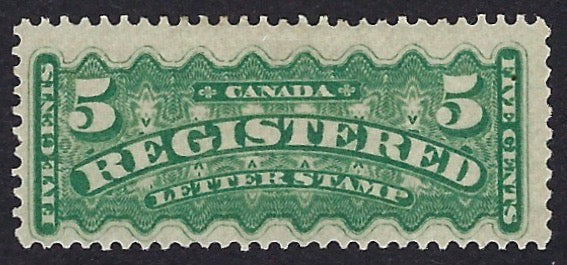 Canada 1875-92 Registration Stamps 5c green (shades) perforations 12 x 11¾, unused, SGR11.