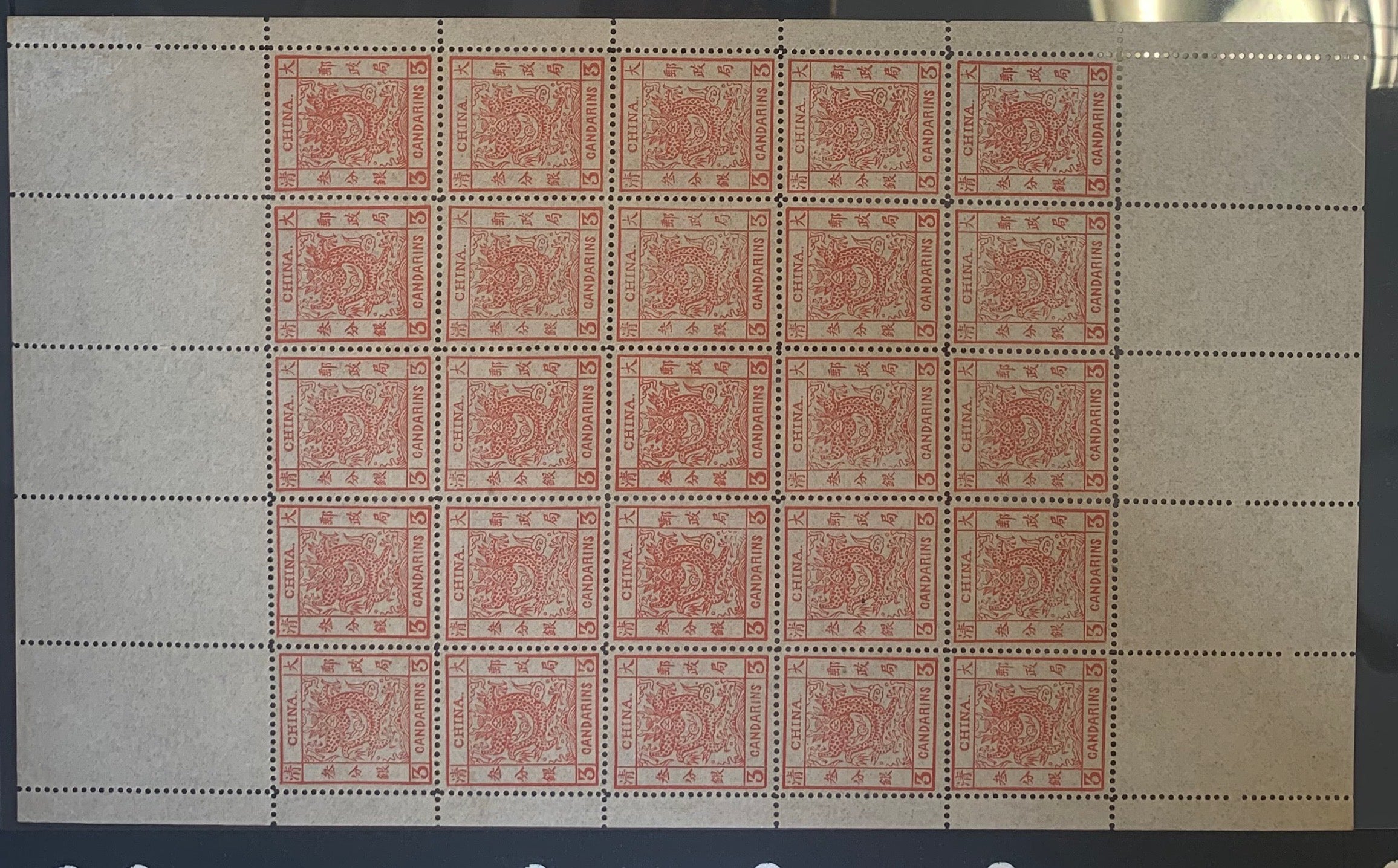 A rare and spectacular multiple of this rare colour variety of the "Candarins" first stamp issue from the Chinese Empire and almost unheard of in unmounted mint condition.