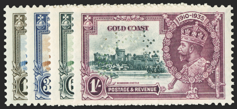 GOLD COAST 1935 Silver Jubilee set of 4 to 1s SPECIMENS, SG113s/16s