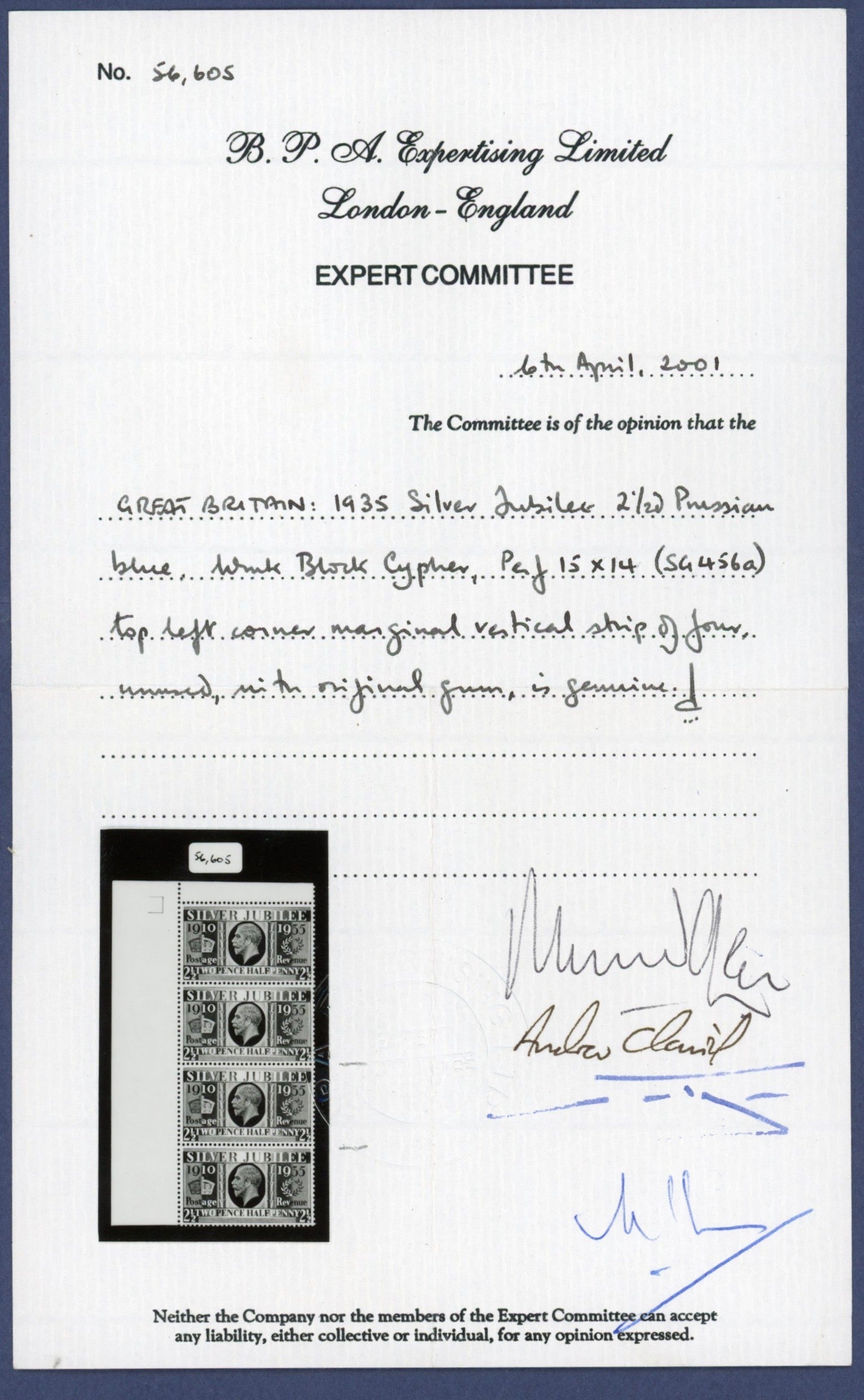 Accompanied by a 2001 British Philatelic Association (BPA) Certificate of Authenticity.