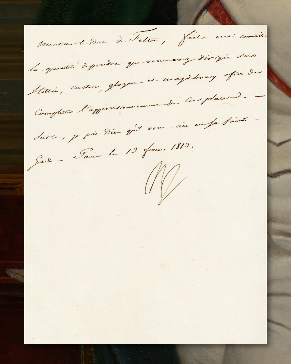 - An excellent single page letter with military content, signed by Napoleon in Paris on February 13, 1813.