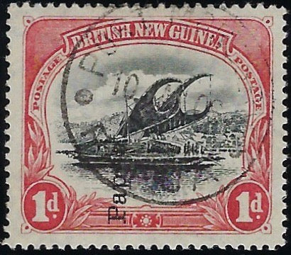 One of the classics from the British Empire featuring the Lakatoi (trading canoe) with Hanuabada Village in the background.