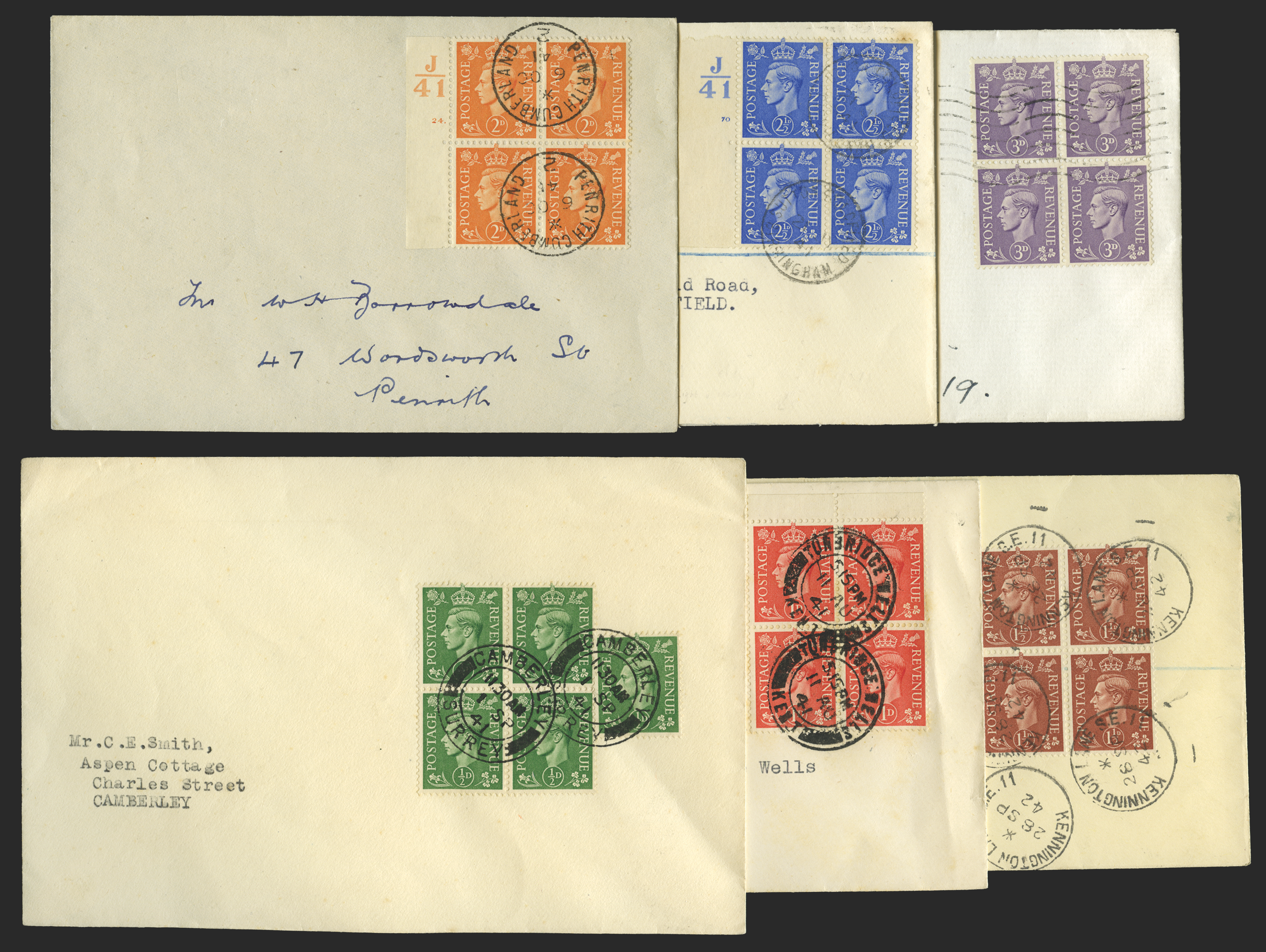 Very fine set of six envelopes each bearing a used block of four cancelled by circular date stamps for the first day of issue.