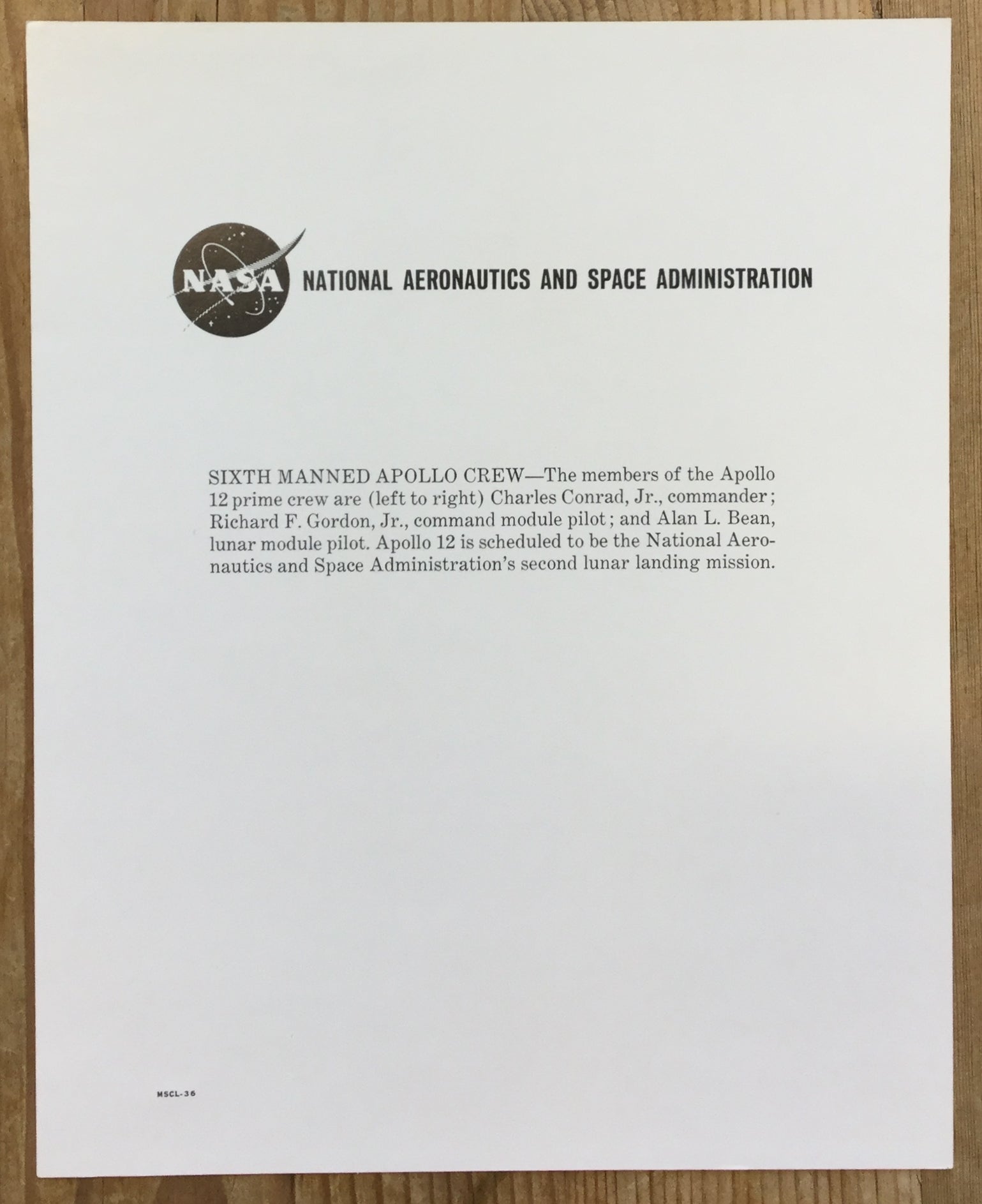 - Colour 8 x 10 inch official NASA signed photo of the three Apollo 12 astronauts standing in front of the lunar module.
