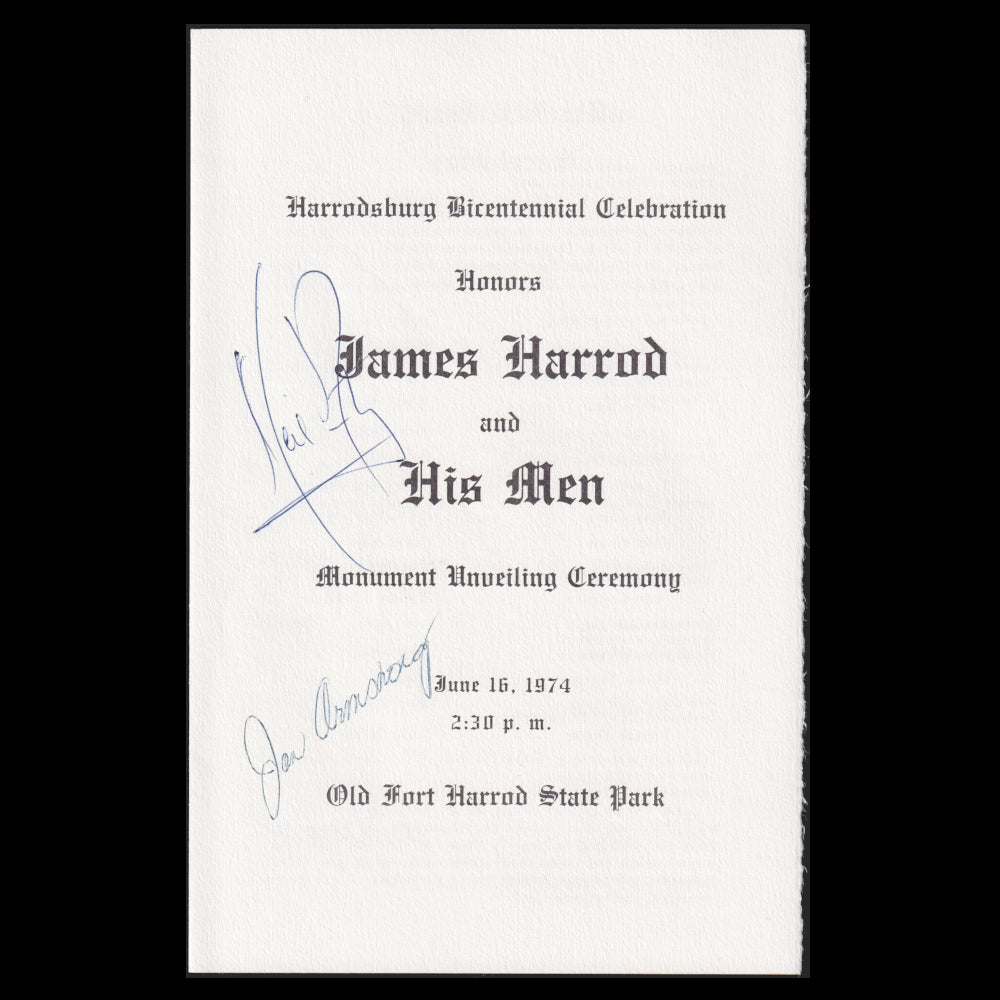 - An original event program signed by Neil Armstrong in Harodsburg, Kentucky in June 1974.