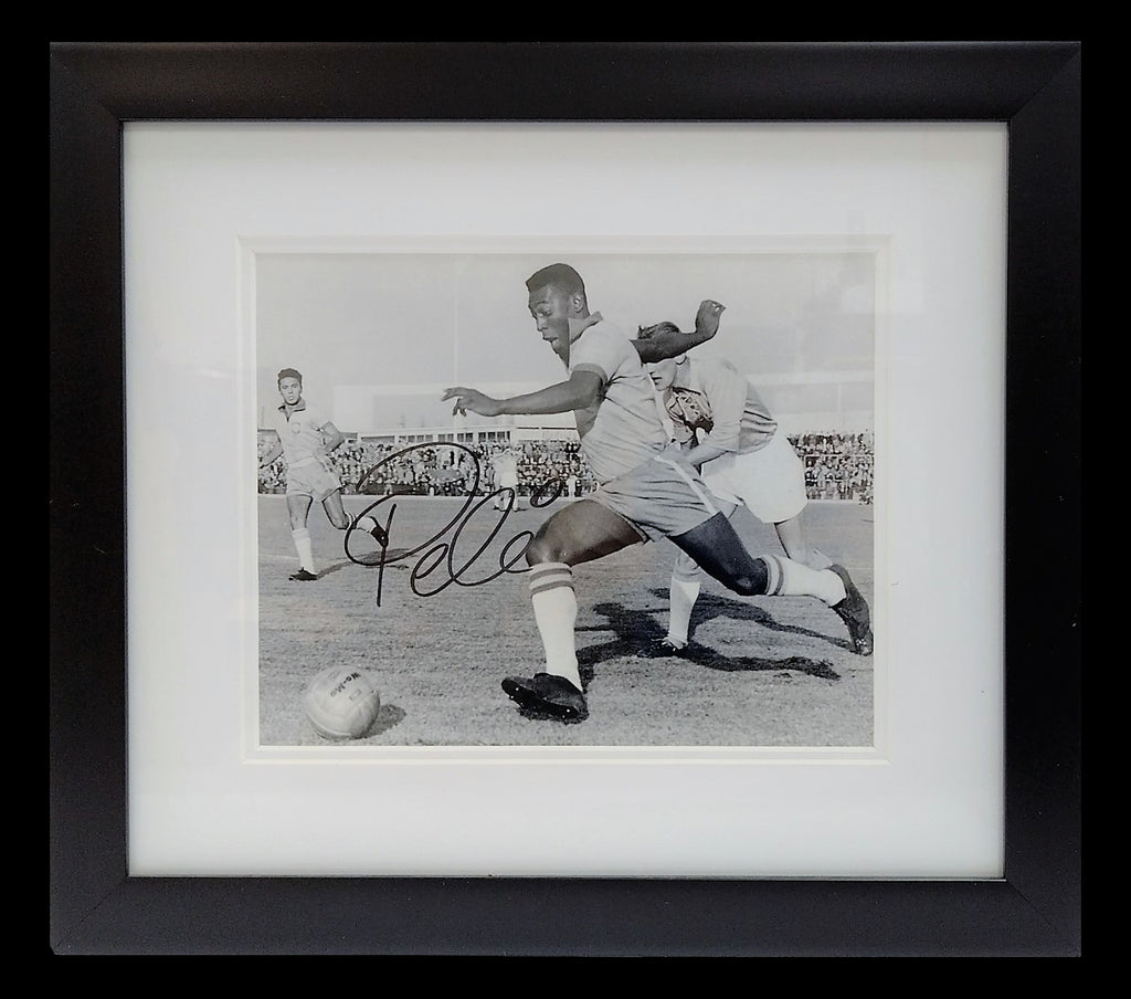 An excellent display piece, featuring a large bold signature and a classic image of the greatest player in football history.