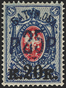 BATUM BRIT OCC 1920 25r on 20 on 14k deep carmine and blue, SG31a