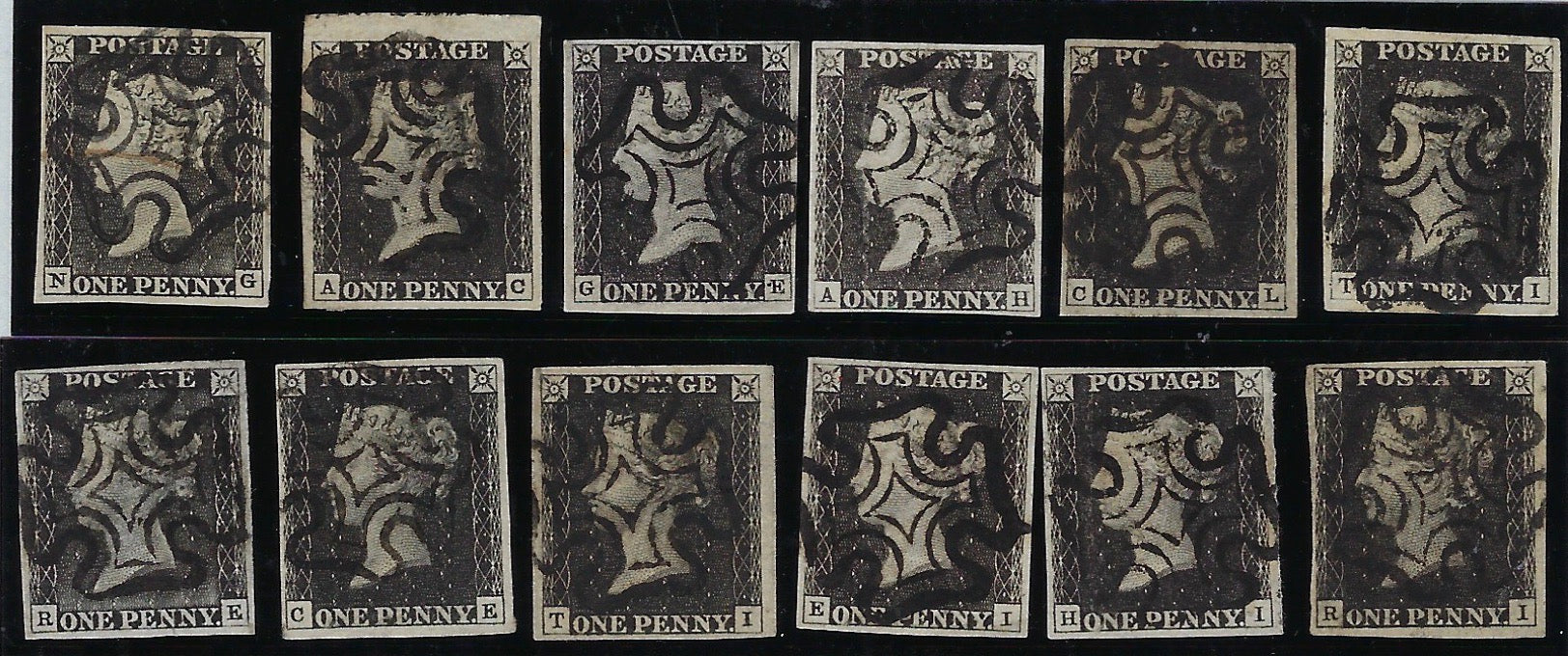 Great Britain 1840 1d black Plates 1a-11, SG2/3