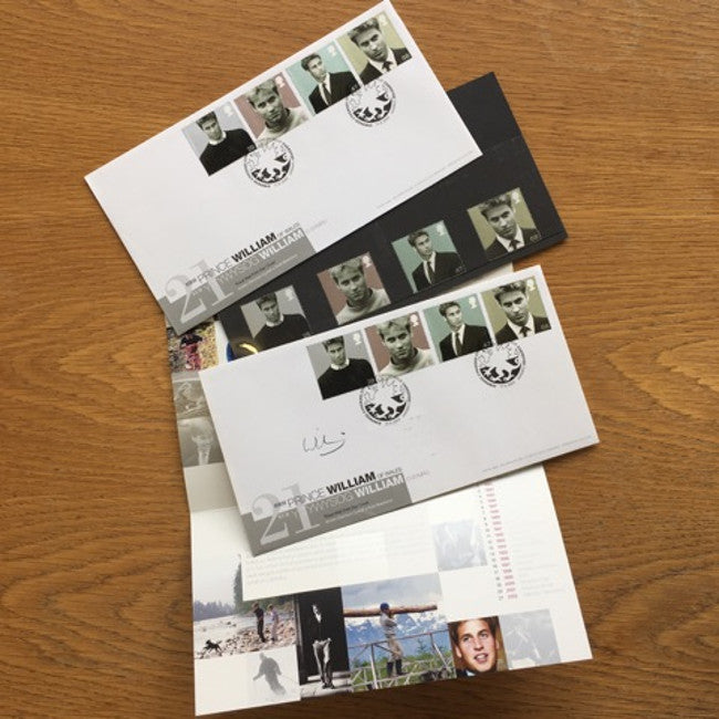 - Also included are four stamps bearing William’s likeness and another unsigned first day cover