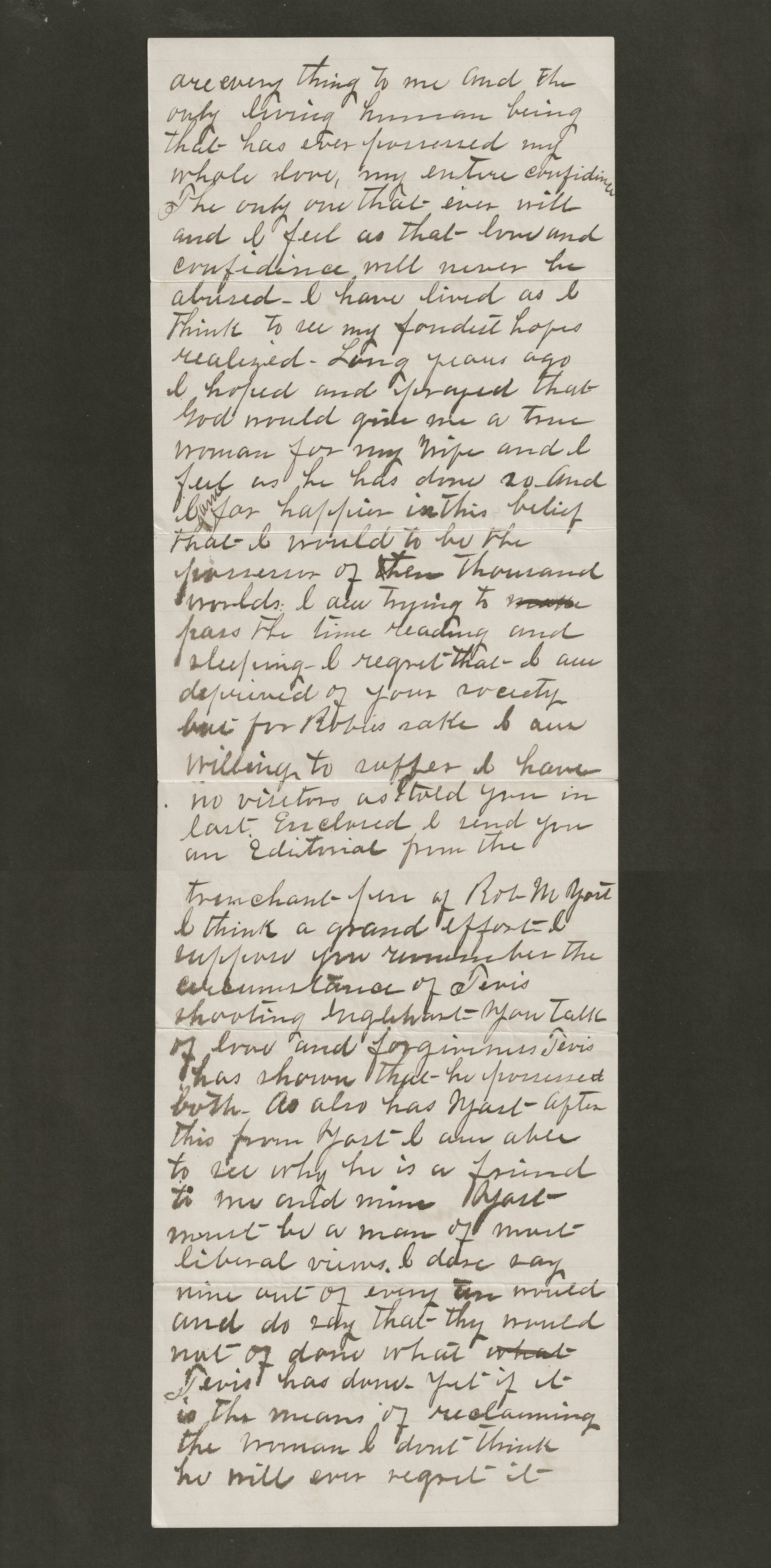 How badly they are deceived. If there is anything on this earth that is half as dear to me as my wife I have failed to find it. You are everything to me and the only living human being that has ever possessed my whole love, my entire confidence, the only one that ever will and I feel as that love and confidence will never be abused.