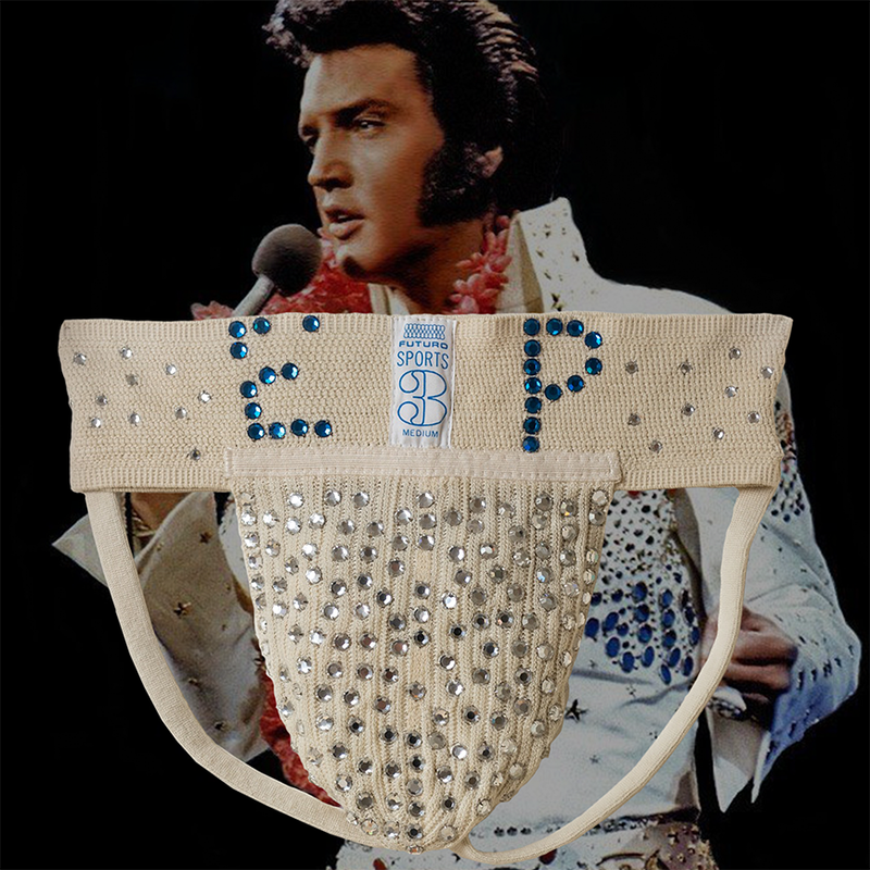 After going global when initially put up for sale, our Elvis Presley personalised bedazzled jockstrap is once again in the international press.