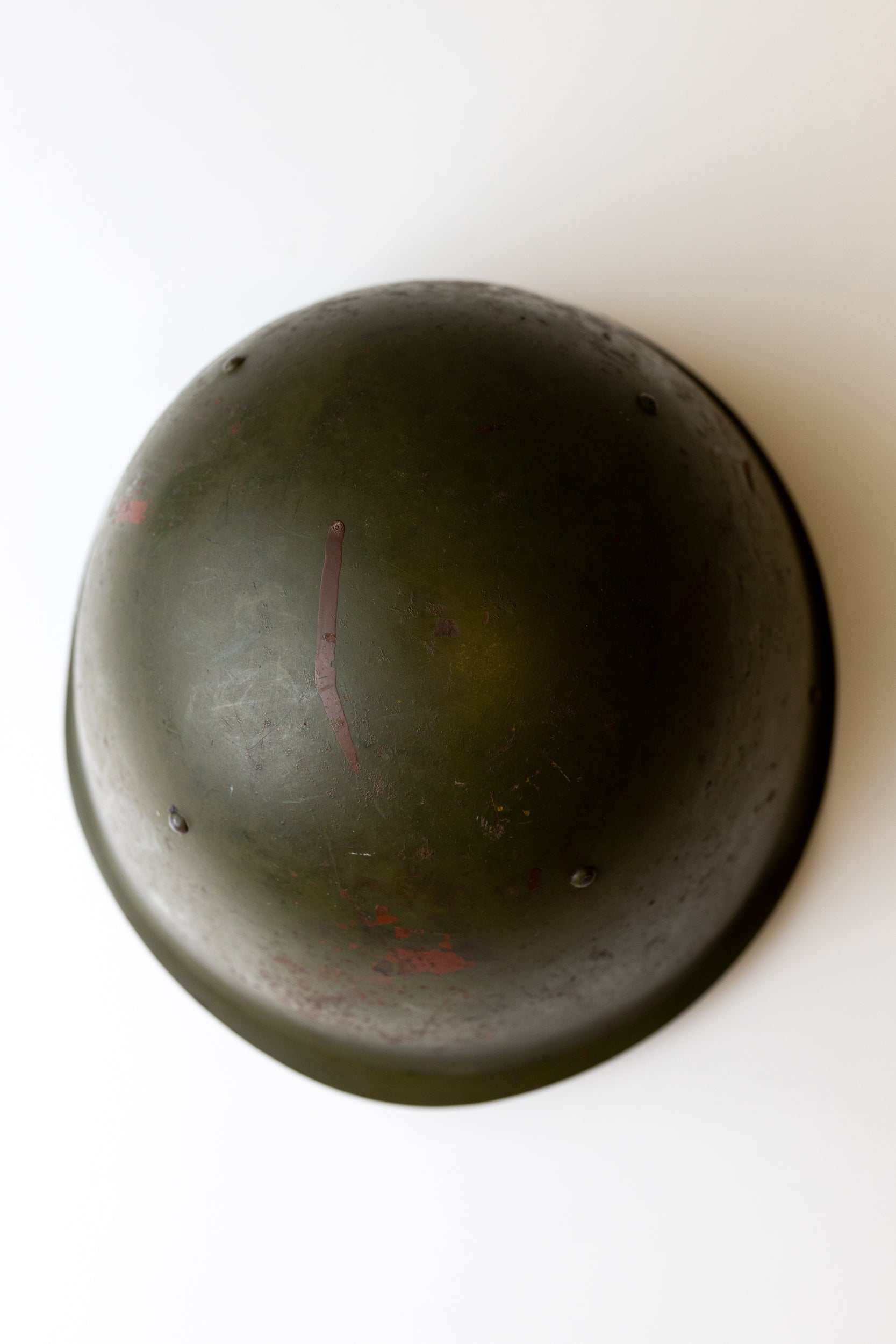 A Soviet Union military helmet worn and signed by Fidel Castro.