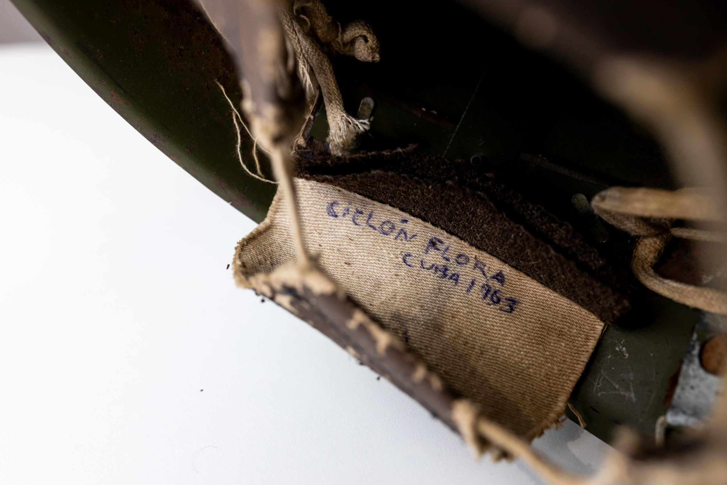 Before he wore the military helmet, like all of his property, Castro wrote his name inside.