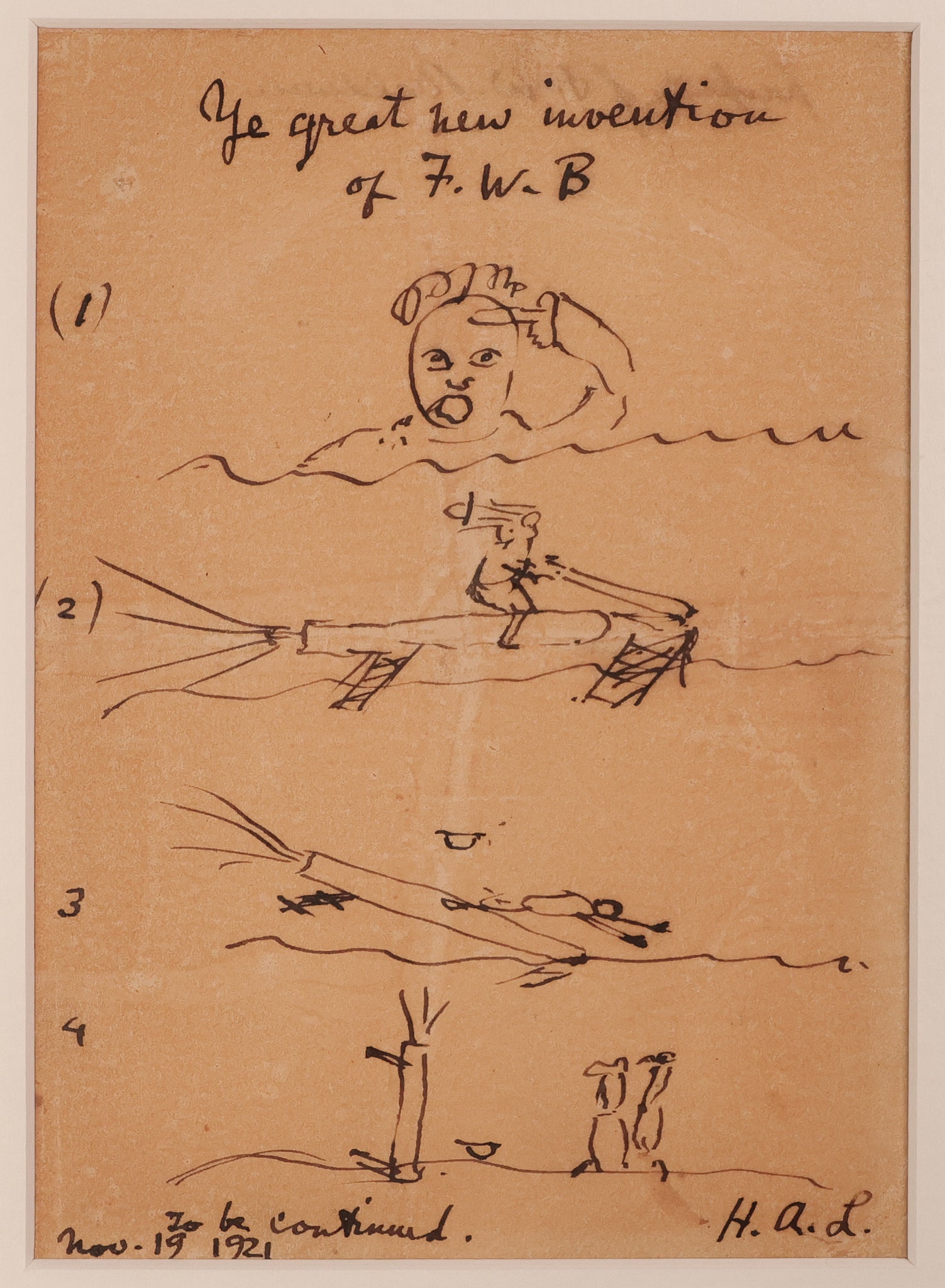 This unique cartoon sketch was a gift from Bell to his protege, the Canadian inventor and aviation pioneer Frederick Walker 'Casey' Baldwin.