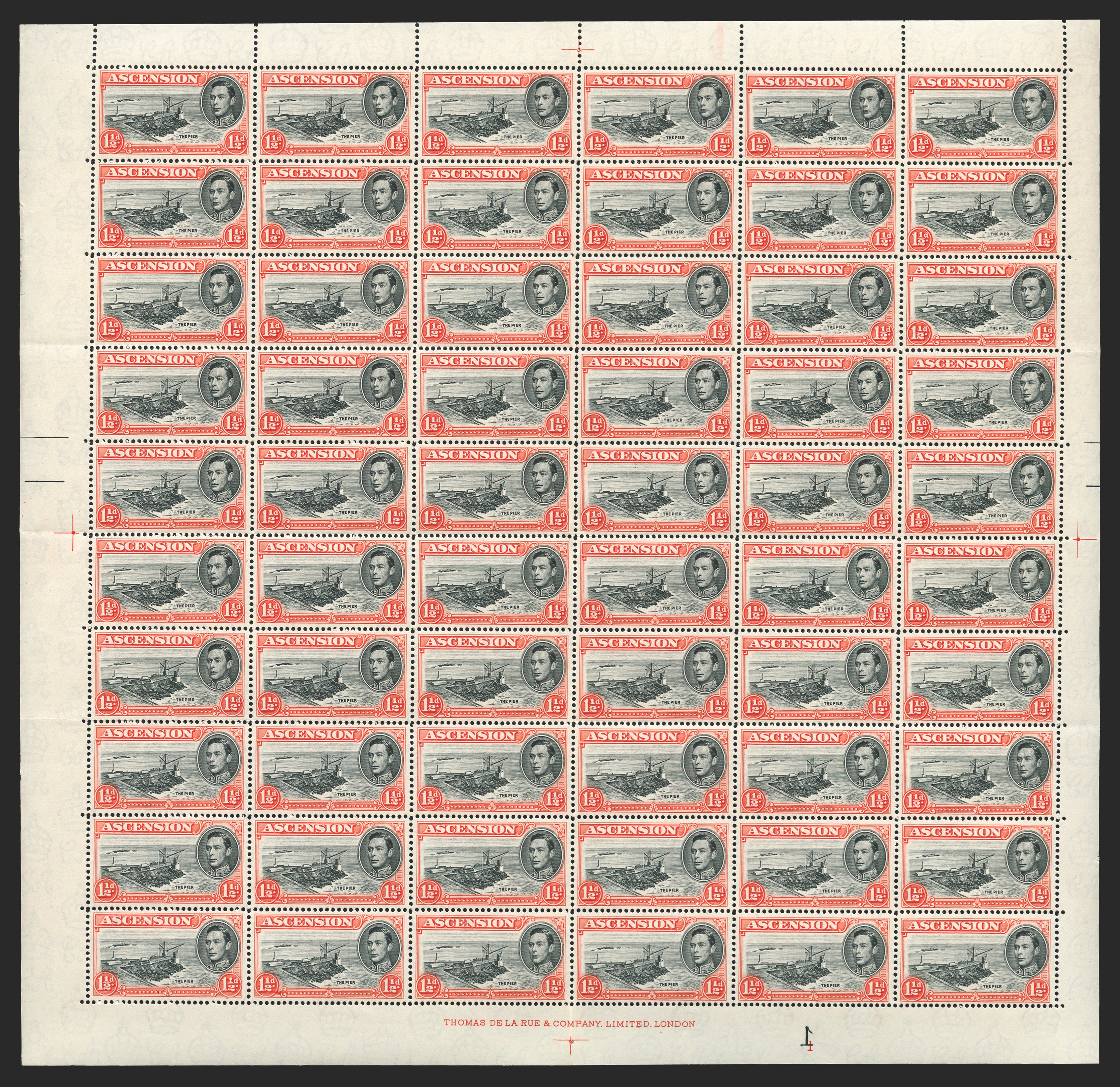 ASCENSION 1938-53 1½d black and vermilion, variety, SG40b/ba
