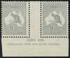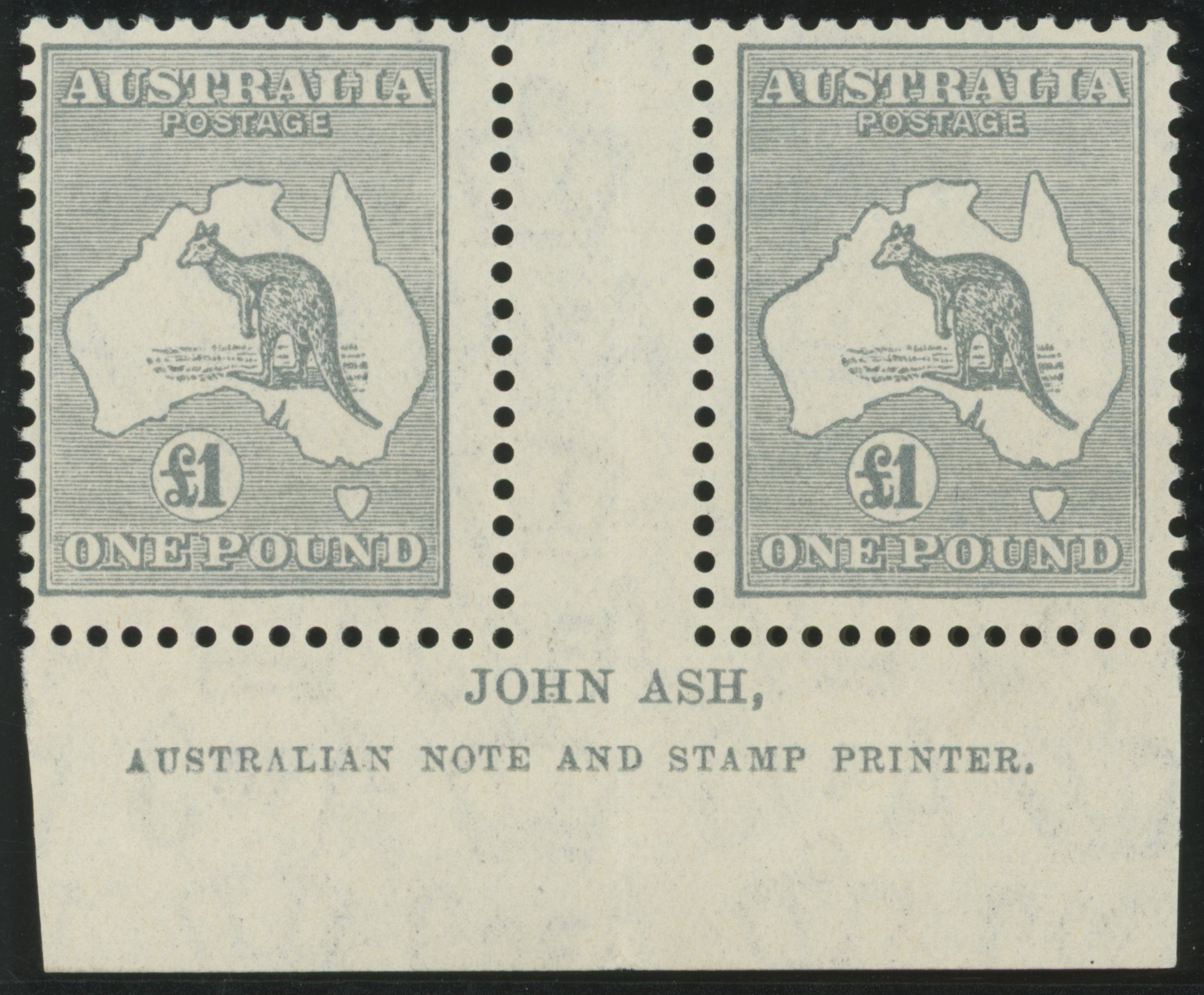 Australia 1931-36 £1 grey "The Kangaroo and Map" interpane horizontal pair with ‘JOHN ASH' imprint, SG137.