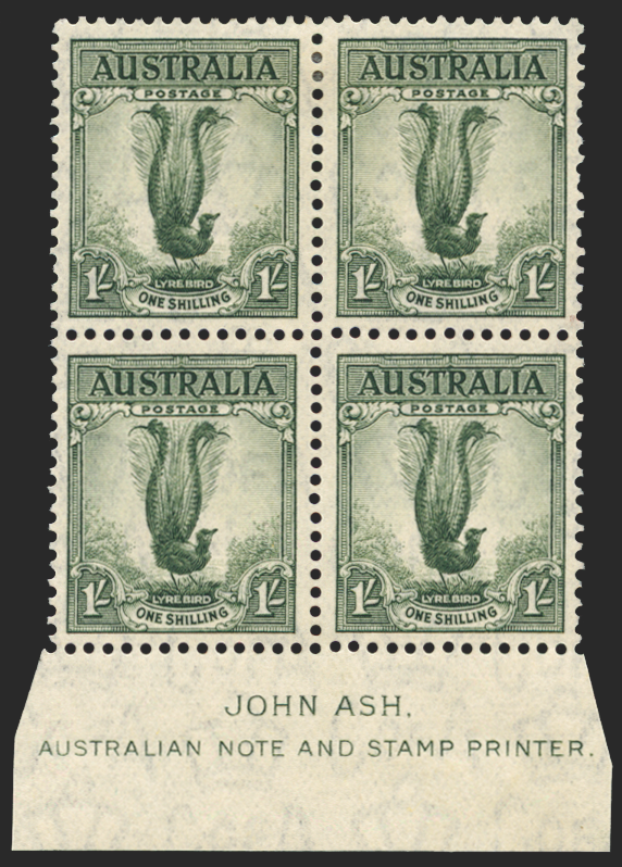 AUSTRALIA 1937-49 1s grey-green 'Lyrebird' (UNUSED), SG174