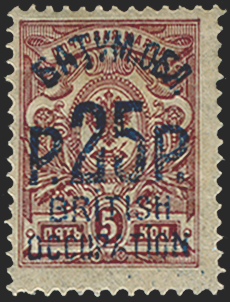 Batum British Occupation 1920 (21 Feb) 25r on 5k brown-lilac, surcharge as type 6 in blue, SG29a.