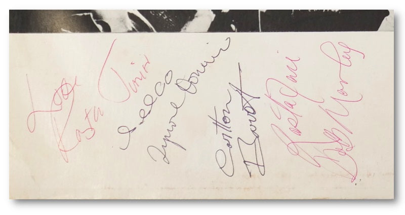 The autographs were acquired following a Bob Marley and the Wailers concert in June 1978 at the Landmark Theatre in Syracuse, New York.