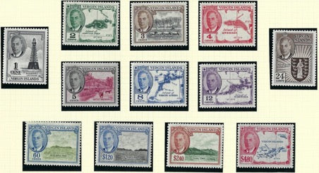 British Virgin Islands King George VI 1952 (15 Apr) 1c to $4.80 bright blue and carmine set of 12, SG136/147.