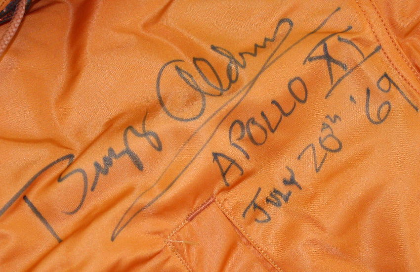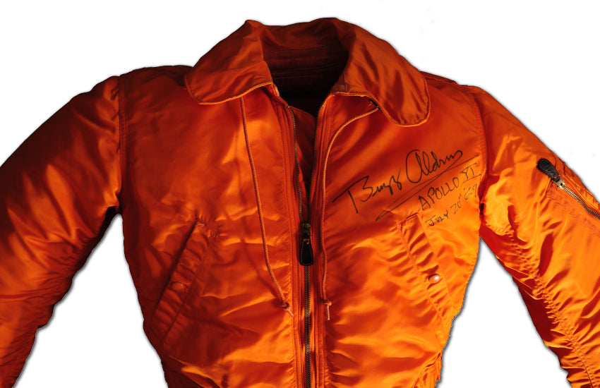It has been boldly signed by Aldrin above the left chest pocket: "Buzz Aldrin, Apollo 11, July 20th 1969".