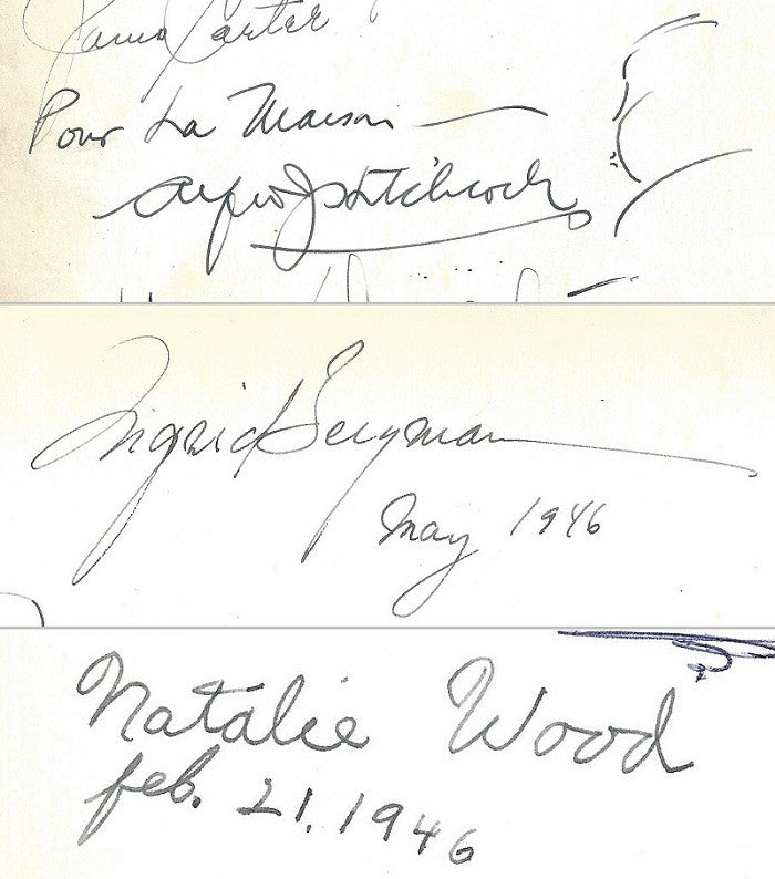 - Signatures include Hollywood stars such as Alfred Hitchcock, Gene Kelly, Ingrid Bergman and Natalie Wood
