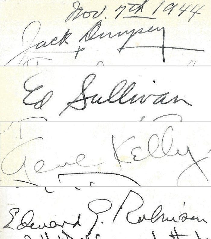 A superb set of autographs from Hollywood's Golden Age, and an evocative piece of New York history.