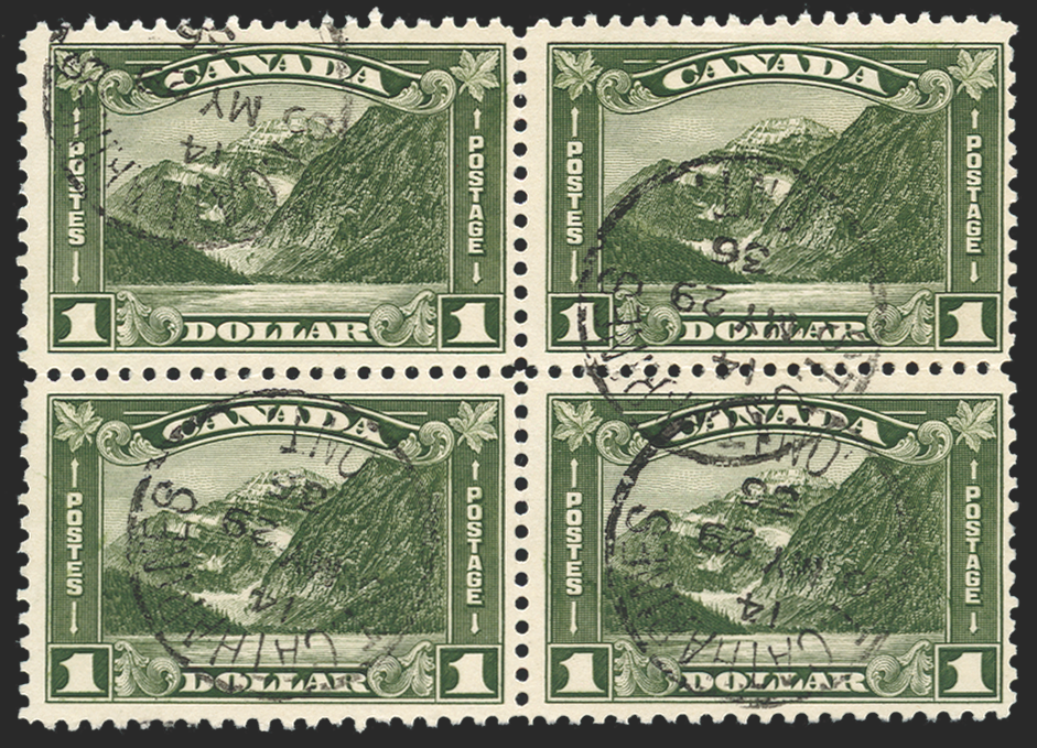Canada 1930-31 $1 olive-green 'Mount Edith Cavell, Canadian Rockies', block of 4, SG303.