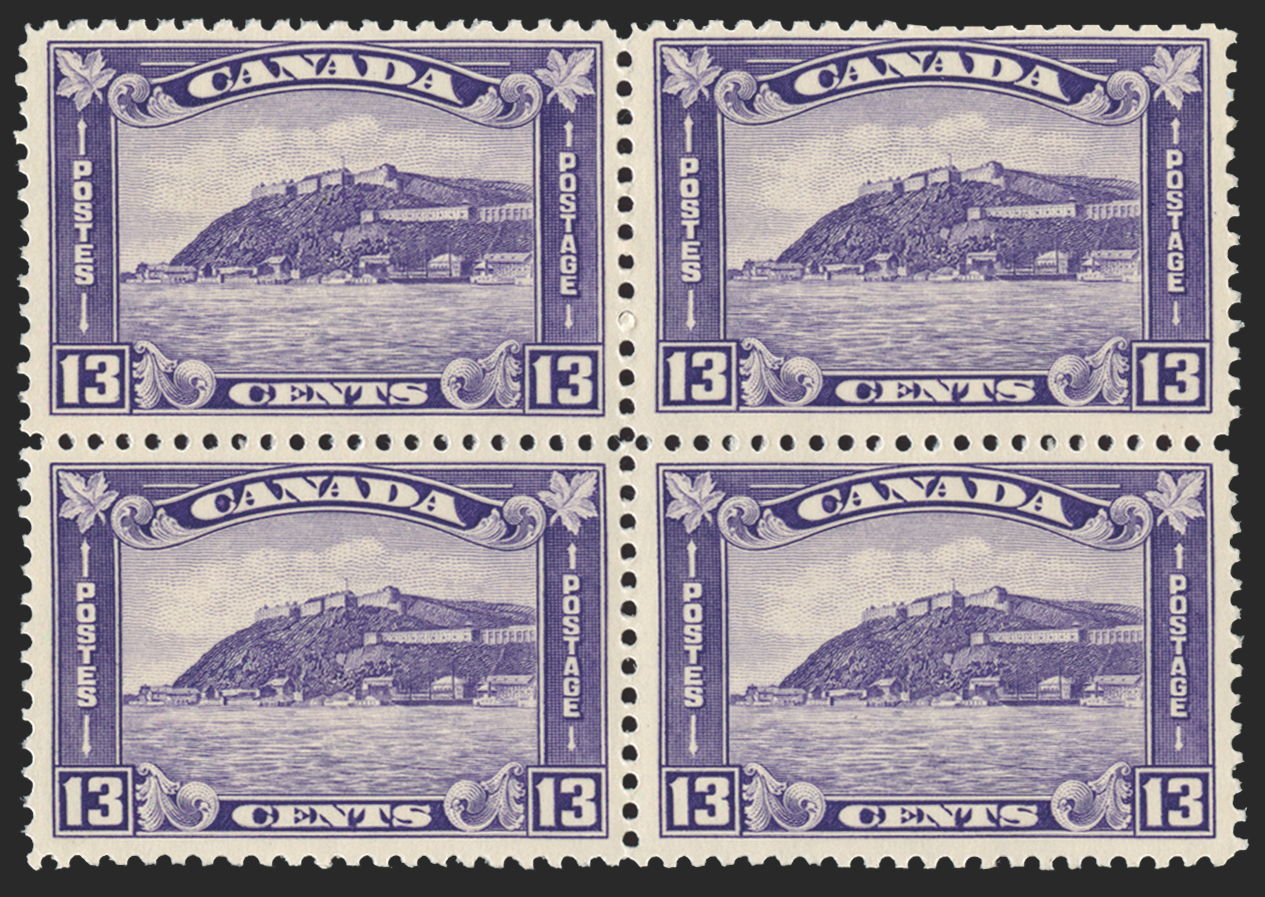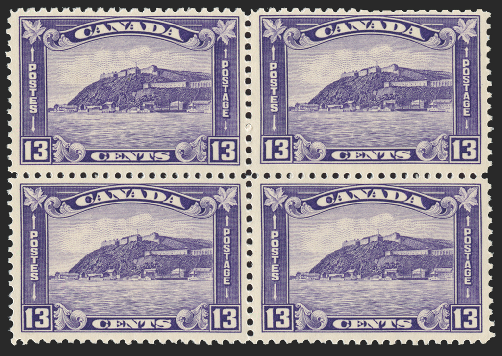 Canada 1932-33 13c bright violet, "The Old Citadel, Quebec", block of 4, SG325.