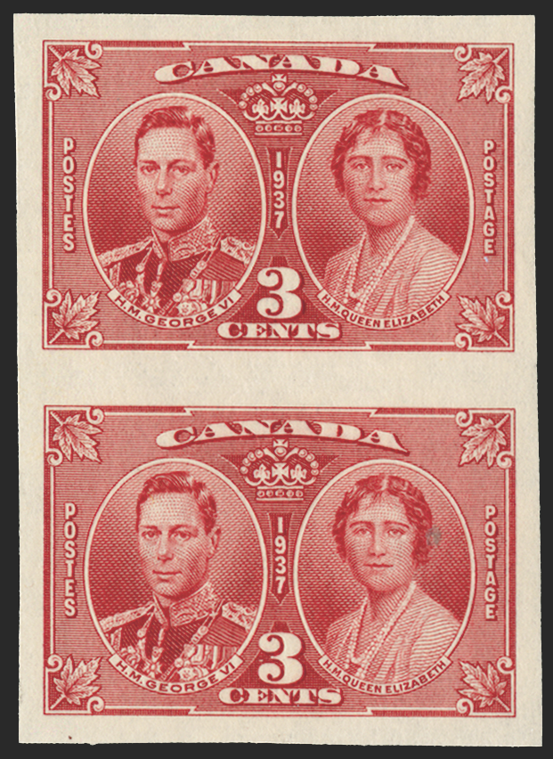 Canada 1937 Coronation 3c carmine, IMPERFORATE vertical pair, SG356.