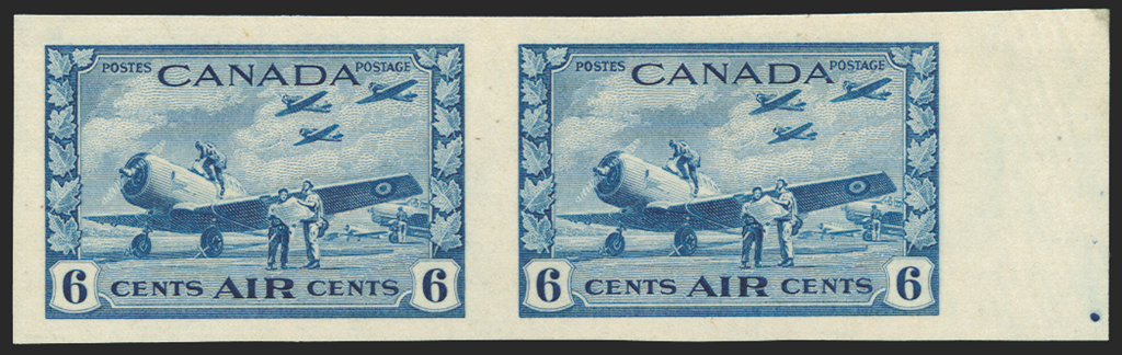 Canada 1942-48 War Effort 6c blue 'Air Mail', right marginal IMPERFORATE horizontal pair, SG399.