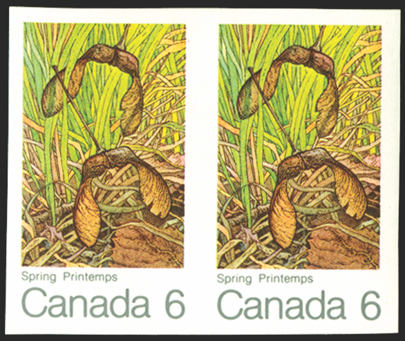 Canada 1971 6c 'Spring', IMPERFORATE horizontal pair, SG677a.