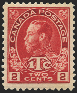 The War Tax was added in addition to the rate of postage meaning the stamp carried both its face value and the added WAR TAX. The additional revenue raised was used to defray the costs of war. Canada's first war tax stamps were produced with modified printing dies of the 'Admiral' series, first to read WAR TAX, and later issues read 1T¢.
